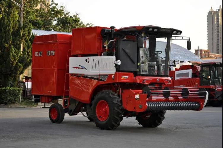 “中联收获”牌自走式花生捡拾收获机,主要适用于花生出土晾晒后收获,一次性完成捡拾、摘果、清选、果蔓分离、茎蔓切碎、分别入箱,2020年新款产品优势是整机全新外观设计,造型新颖,增加日间行车灯,更具时代潮流;豪华驾驶室,内设9寸高清显示器,新增送果堵塞监视系统,操作更方便;捡拾器两级可调转速,收获效率更高;升级全车轴承配置,关键部位轴承采用免维护轴承,大大降低故障率;清选送果风机二级变速,适用不同收获期作业;新式送果系统,不易堵塞,作业效率高,收割速度更快;配装140马力及以上名优发动机,多档开关;根据用户需求,可选装闭式前桥、机械后驱、液压后驱,选择性更强。