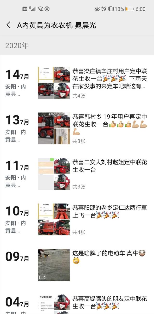 在郑州中联新款产品-自走花生收获机投放市场前,年销售额几十万的晁老板觉得自己代理之路越走越窄。2016年年末,郑州中联推出自走花生捡拾收获机,因农机市场整机低迷,很多代理商面对新产品犹豫观望。而晁老板凭借对郑州中联的信赖,押宝自走花生收。抓住“风口”的晁老板,2017年销售10多台自走花生收,销售额破百万。随着自走花生收获机市场井喷,抢占先机的“为农农机”2018、2019年销售额接连翻番!