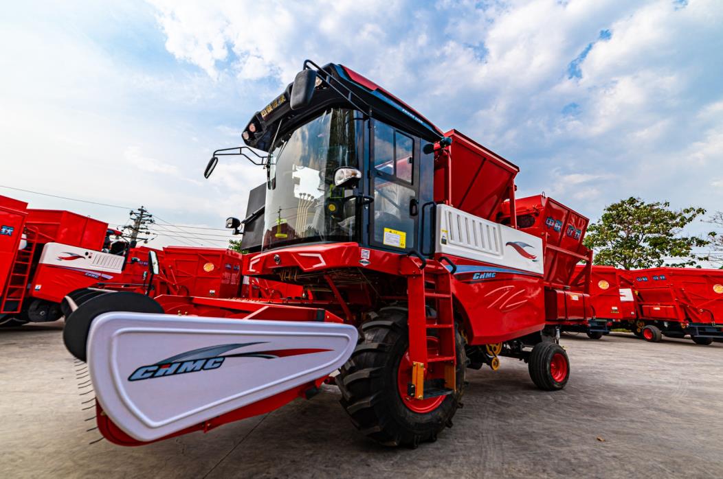 新型果实输送系统,不易堵塞,提高了收割速度;滚筒箱增加清杂风扇,不积草。
