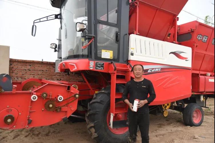 谈及这台机器,房邵军显然很开心,“这台机器是我去年买的,7月份提的车,就在周边开始干了,去年收了应该有1700多亩吧,比我那个旧的可好用多了!”